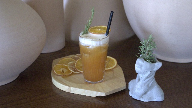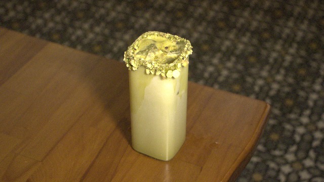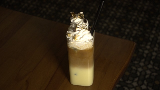 Fresh Saffron, Cardamom, single shot espresso, Milk.