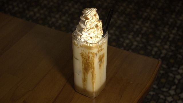 Caramel sauce, Lotus butter, Milk, single shot espresso...