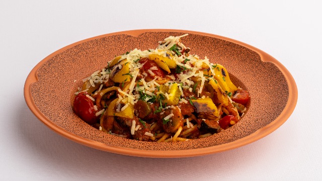 Spaghetti, extra virgin olive oil, garlic, tomato, toas...